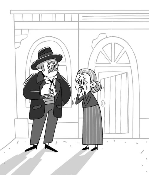 Вдруг на пороге показалась старушка, которая часто моргала от резкого света. Я посмотрел на Холмса и увидел такое разочарованное выражение на его лице, что чуть не покатился со смеху.
