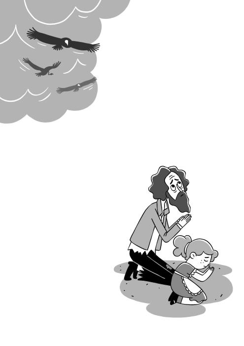 Девочка охотно согласилась. Они расстелили серую шаль на земле, встали на колени, сложили руки и начали молиться. Больше им надеяться было не на что. Помолившись, девочка заснула, а следом за ней крепким сном забылся измученный мужчина.