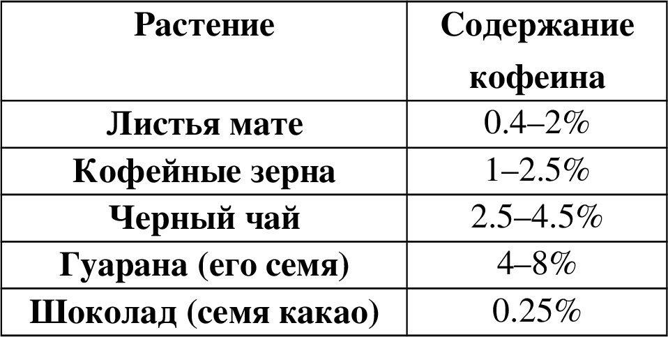 Ниже представлена таблица содержания кофеина в различных продуктах (таблица № 4).