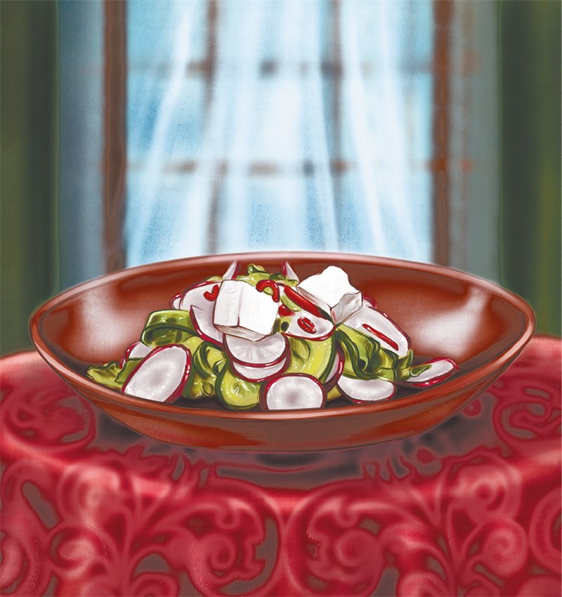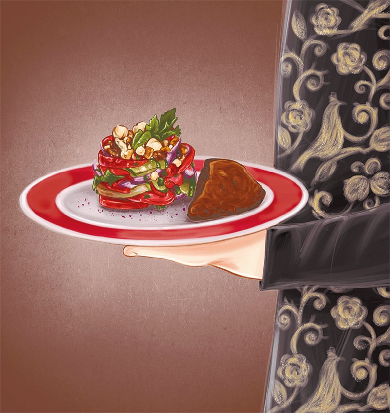 Салат Kisir иногда называется еще салатом для «девичьих посиделок», потому что он свежий и легкий, подается холодным и насыщает даже тогда, когда нет аппетита. Такой салат наверняка часто подавали в покои Хатидже.