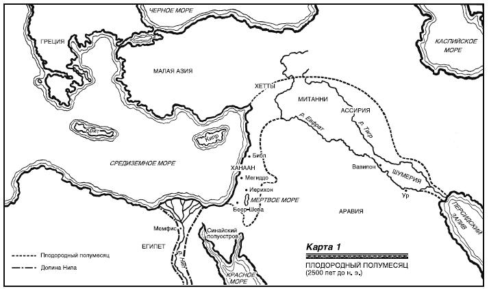 В древние времена, по крайней мере для части этой территории, использовалось одно название – Ханаан. Это название знакомо современным людям, живущим на Западе, потому что оно упоминается в Библии. Посему для удобства мы и будем далее именовать полосу Средиземноморского побережья, образующую западную оконечность Плодородного полумесяца, землей Ханаанской.