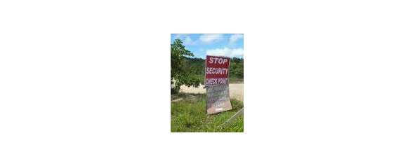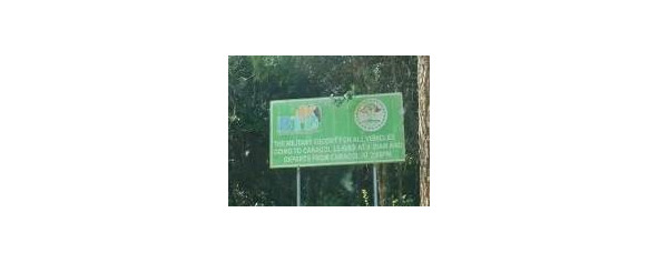 518 Щит с требованием туристическим автобусам ждать военного конвоя в Караколь