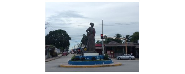 По карте до Шпухиля было всего сотня километров, и ехали мы быстро, по хорошей дороге, но доехали только к четырем. Водила не лихачил, и видно было, что за дорогой наблюдают. Между тем, только за это время, мы видели пару серьезных аварий. Как уж горячие мексиканские мучачос умудряются… Водила сбросил сначала попутчиков, а потом доставил Коша на центральную площадь, прямо к гигантской статуе женщины-матери в народном кампечийском костюме 627. Кош стал искать вывеску Чаак Калакмуля. Вот, тут же он был, судя по распечатке из Гугла! Пиццерия, действительно, была, а вывески отеля не было. Что делать?
