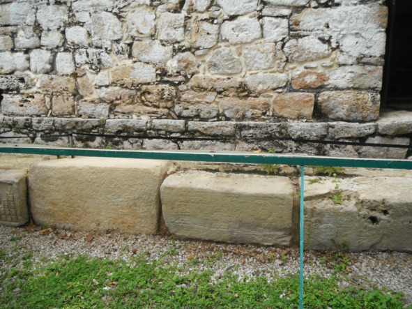 У подножия здания ряд блоков с надписями и рельефами. Но потрогать их трудно 775. Зато сзади видно, насколько массивная у него платформа 777—8.