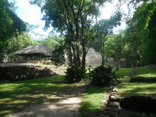 Довольно быстро выходишь на другую большую поляну, на дальнем конце которой возвышается пирамида. По сторонам – остатки платформ и фундаментов дворцов и храмов 790. В общем-то, это все. Это весь памятник. Открытый для доступа туристов, разумеется. Город, конечно, больше, но его даже особенно не копали (явной консервации больших территорий не видно). Так что не удивительно, что нас сюда привезли под занавес.