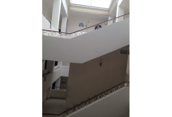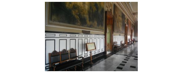 Колоритное здание. На втором этаже кабинеты начальства, с табличками – начальник такого-то отдела и так далее. Реально пускают народ в коридоры власти. Там был огромный классический бальный зал, украшенный картинами местного художника на темы узловых моментов мексиканской истории, особенно Юкатана.