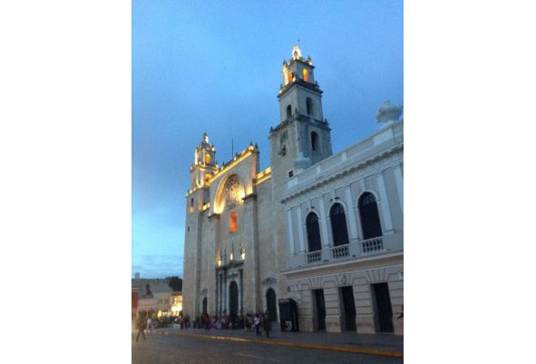 817 Собор Сан Ильдефонсо в Мериде вечером