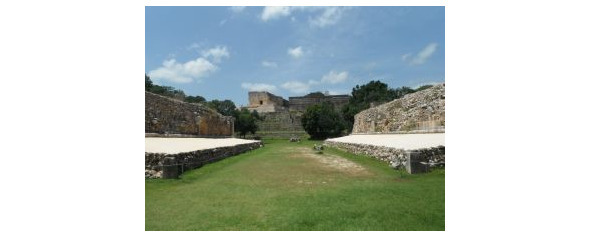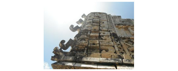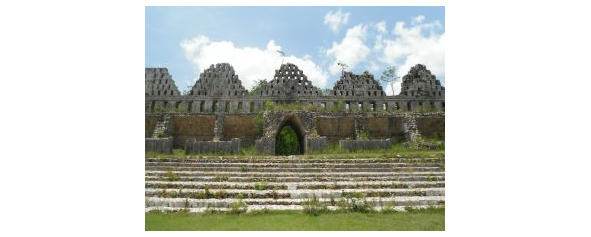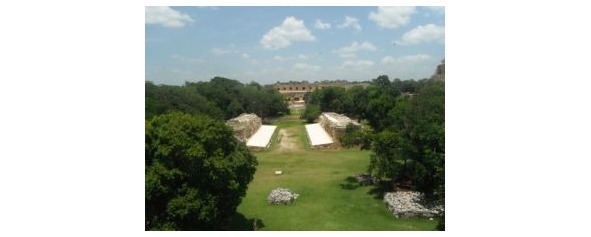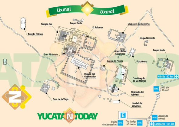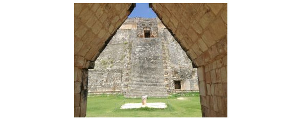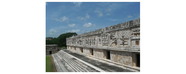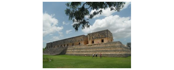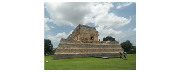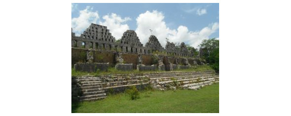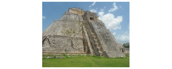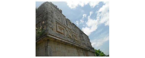«Ушмаль (Uxmal) – руины крупного города майя на северо-западе полуострова Юкатан, на территории современного мексиканского штата Юкатан, в 68 км южнее города Мерида. Название Ушмаль происходит от „ox-mal“, что на языке майя означает „три раза“ (возможно, имеются в виду три периода существования города – то есть после основания были ещё два воссоздания). Вместе с находящимися рядом церемониальным комплексом Лабна и дворцовым комплексом Сайиль объявлен в 1996 г. памятником Всемирного наследия ЮНЕСКО. Является образцом архитектуры стиля Пуук. Город основан 10.9.0.0.0 | (2 Ahau 13 Mac), что соответствует 15 августа 1007, основатель Ах Суйток Тутуль Шив (кроме того, есть версии о ещё двух, более древних основаниях). Один из культурных и политических центров древних майя на полуострове Юкатан (Мексика).