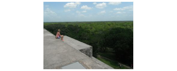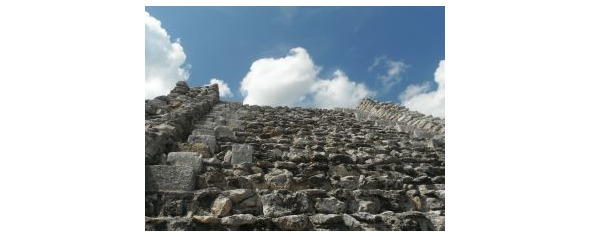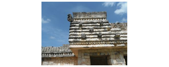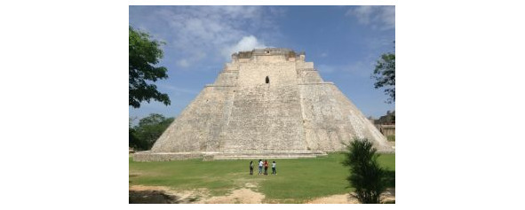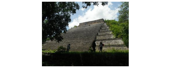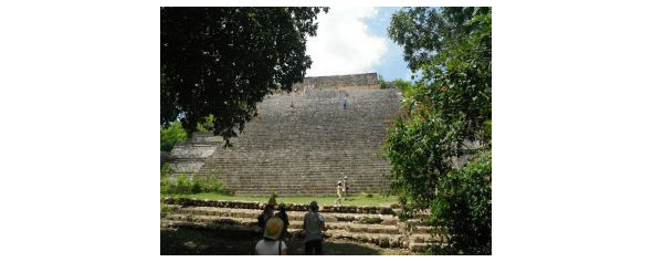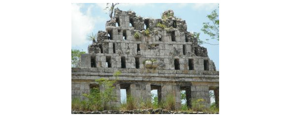 «Пирамида волшебника» или «Замок Карлика». На вершине пирамиды, на высоте 38 метров, расположен храм. Пирамида овальная в плане и напоминает нынешние жилища майя.