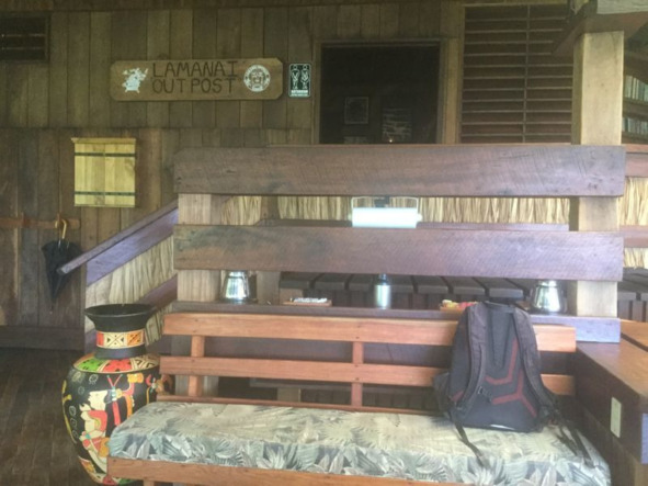 Лодж (Lamanai Outpost Lodge) – чуть не пятизвездочное место. Рекламируется как аутентичный лодж в центре джунглей и близко к древнему городищу. В общем, то и другое верно. Лодж небольшой. Судя по количеству продвинутых отелей в городке Оранж Волк, ниже по течению Новой реки, километрах в 20—30 от Ламаная, туристы предпочитают останавливаться там, а потом их везут по реке в «сердце джунглей» в загадочный город древних майя (тоже, в общем, не слишком отклоняется от реальности). Это как раз дневная экскурсия.