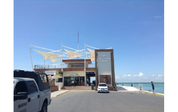 Наконец, в 10—30 – в пол-одиннадцатого, Карл! – нас погрузили и мы отправились 1275. Уф! До Четумаля почти 100 км, примерно как до Голубой дыры, но катер шел даже быстрее чем вчера, море – внутренний залив Четумаль – было гораздо спокойнее. Без особых приключений, чуть позже полудня мы прибыли на причал Четумаля. Снаружи он не представлял особой красоты 1276.