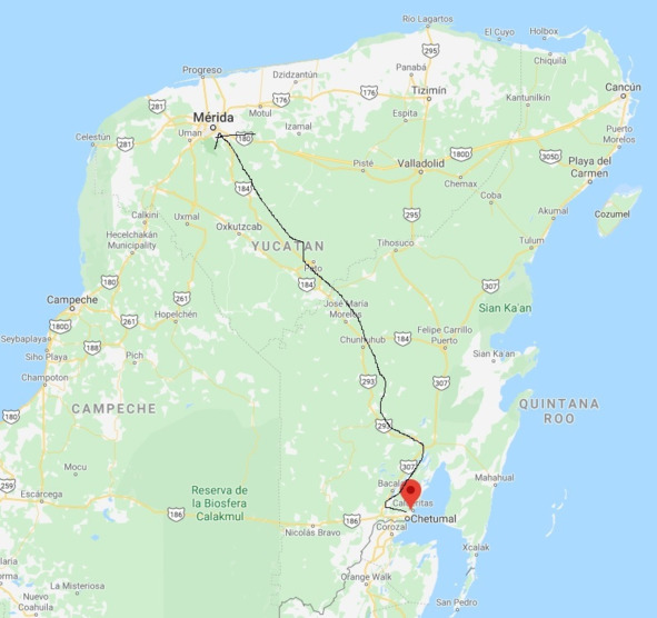 1282 Схема автобусного маршрута Четумаль-Мерида (гугломап)