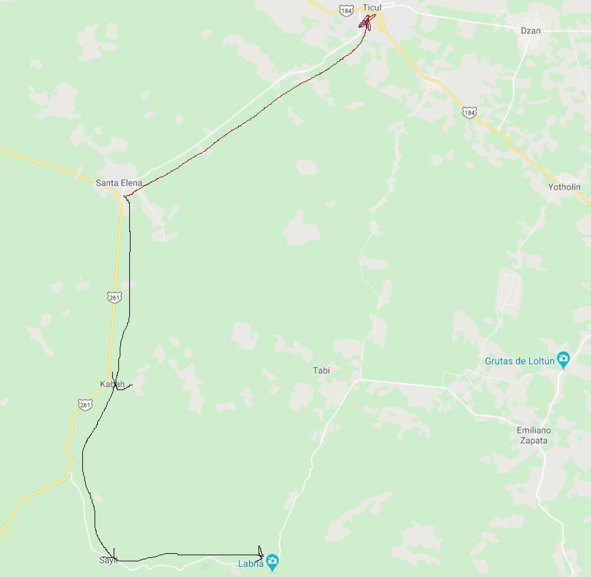1302 Маршрут объезда памятников руты Пуук от Санта-Елены до Лабны (гугломап)