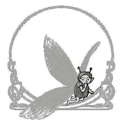 Фея с серебряными волосами в нежно-розовом платье шаловливо играла с маленькими связками цветов, каждая из них имела лицо и была одета в платье.