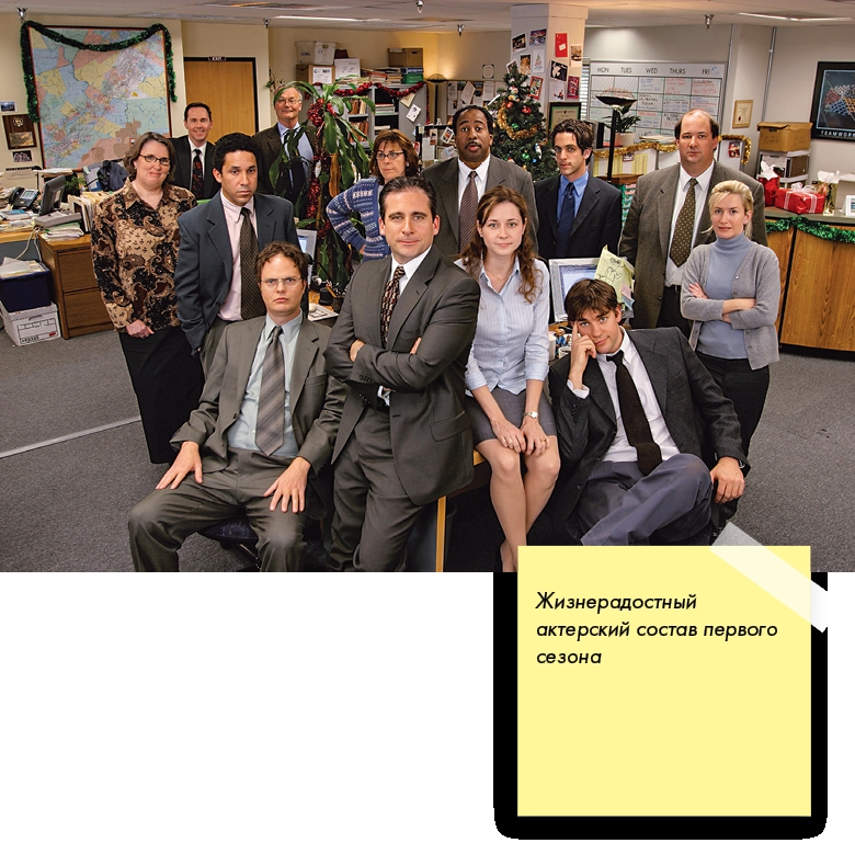 БЕН СИЛЬВЕРМАН: Я думал о том, что рано или поздно сериал «Друзья» устареет. И тогда понадобится найти ему замену. В то время похожие передачи могли группировать по блокам. Например, был вечерний пятничный блок с четырьмя семейными телешоу. «Офис» в этом плане мог стать революционным. Британскую версию критики уже захвалили, а «Би-би-си Америка» даже приобрела права на показ. Так что ажиотаж вокруг сериала мало-помалу захватывал и США.