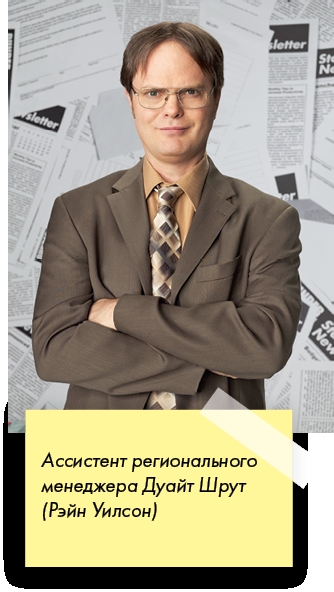 РЭЙН УИЛСОН («ДУАЙТ ШРУТ»): Жизнь до «Офиса»? Что ж, обратимся к далекому-далекому прошлому… до того, как попасть на телевидение, я около десяти лет занимался театром в Нью-Йорке. Проще говоря, я был театральным актером. В 1999-м приехал в Лос-Анджелес. В 2001-м (или в 2003-м, не помню точно) я переживал не лучшие времена: мыкался по рекламным кастингам, пробам на озвучку или на эпизодическую роль в сериале. Так я снялся в «Зачарованных», а также в «С.S.I.: Место преступления» и —
