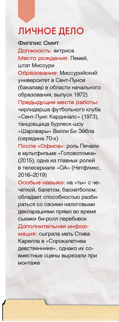 ФИЛЛИС СМИТ: Хм, имя не вспомню. Дальше разговора тогда так и не пошло. Для роли робкой женщины я оказалась недостаточно робкой. Но зато в ходе разговора проронила: «Кажется, я могла бы неплохо справиться с обязанностями кастинг-директора». Примерно год спустя она снова набрала мой номер. Так и завертелось.