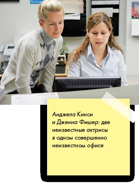ДЖЕННА ФИШЕР: Я отнюдь не была звездой, и у меня не было ни единого шанса оказаться на одном из гигантских билбордов бульвара Сансет. Мое имя не было узнаваемым. Поэтому мне не удавалось заполучить главную роль – до того, как в моей жизни появился «Офис». Тогда моя неизвестность, которая всегда была моим недостатком, превратилась в достоинство.