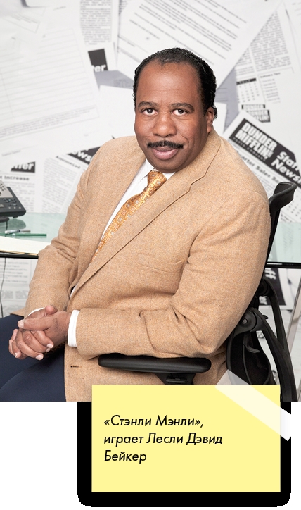 ФИЛЛИС СМИТ: Помню, у Лесли [Дэвида Бэйкера, Стэнли из «Офиса»], в день проб было назначено еще одно прослушивание в другом месте. Мы ему сказали, чтобы шел туда, а потом возвращался к нам. Добираясь до нас во второй раз, он застрял в пробке, поэтому настроение у него было препоганое. Видимо, это дало свои плоды. [Смеется]