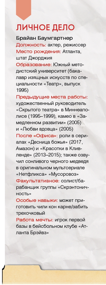 БРАЙАН БАУМГАРТНЕР: Ты был знаком с Анджелой еще до «Офиса», так ведь?