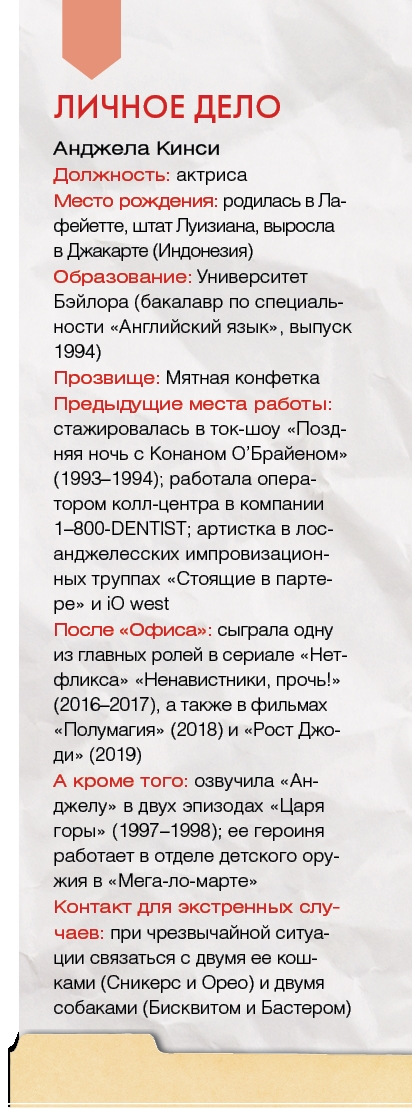АНДЖЕЛА КИНСИ: Я проходила прослушивание на роль Пэм. Я это отлично запомнила, потому что Грег поймал меня у порога и сказал: «Анджела, это может показаться смешным, но я сделаю вид, что не знаю тебя. Хорошо? Притворимся, будто мы незнакомы». И добавил: «Поверь мне, если они будут рассматривать тебя наравне со всеми остальными, будет только лучше. Я верю в тебя». Я такая – окей, принято! А вы все знаете, как я «умею» делать каменное лицо. Хуже некуда. Но я подумала: «Ничего, я просто не буду с ним пересекаться взглядом».