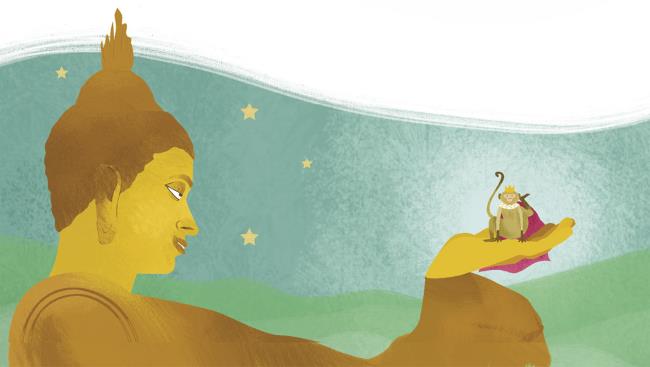 Прошли годы, и обезьяна вернулась назад. Добравшись до Будды, она сказала: «Я была на самом краю света и оставила там след».