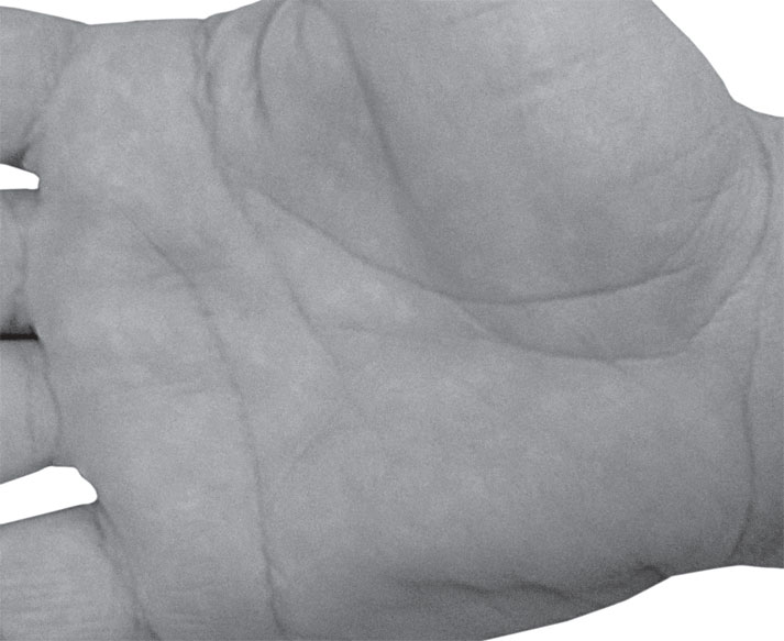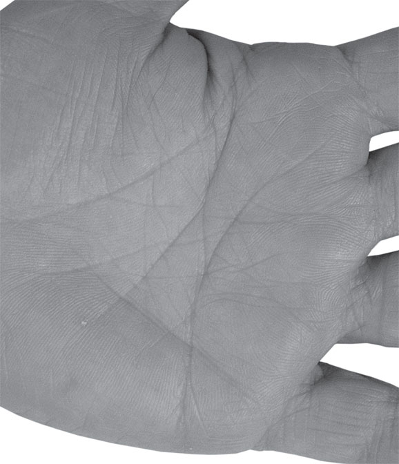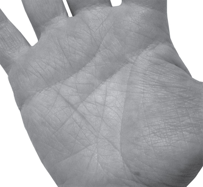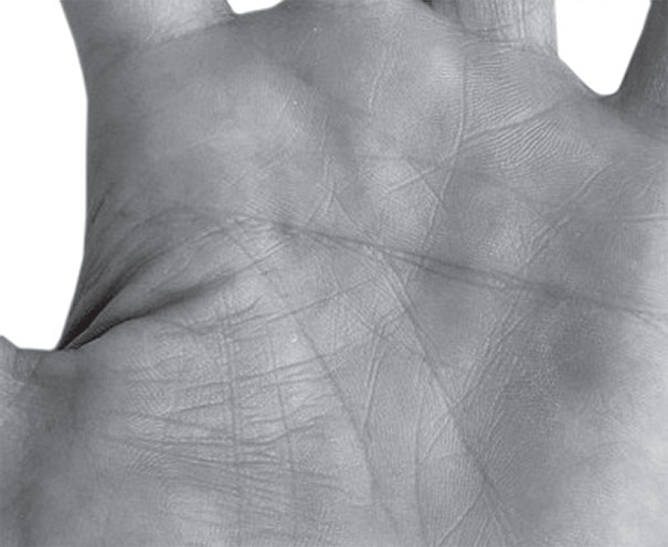 Рука с минимальным количеством линий – теоретически их может быть две, если на ладони присутствует четырехпальцевая складка, но в практике не встречается, – знак зрелой души. Такая рука трудна для анализа в силу ее малоинформативности, но можно сказать, что обладателю ее Судьба дала карт-бланш – право прожить жизнь по своему усмотрению.