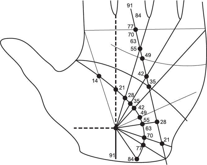 Одна из самых серьезных проблем хиромантии, кажущаяся на первый взгляд достаточно простой, – датирование. Недостаточно найти на ладони те или иные знаки, нужно еще и определить, в какой период жизни будут происходить те или иные события, отмеченные знаками.