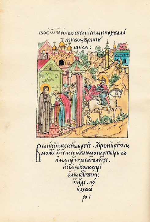 Благословение воинов. Миниатюра из «Повести о Куликовской битве». XVI в.