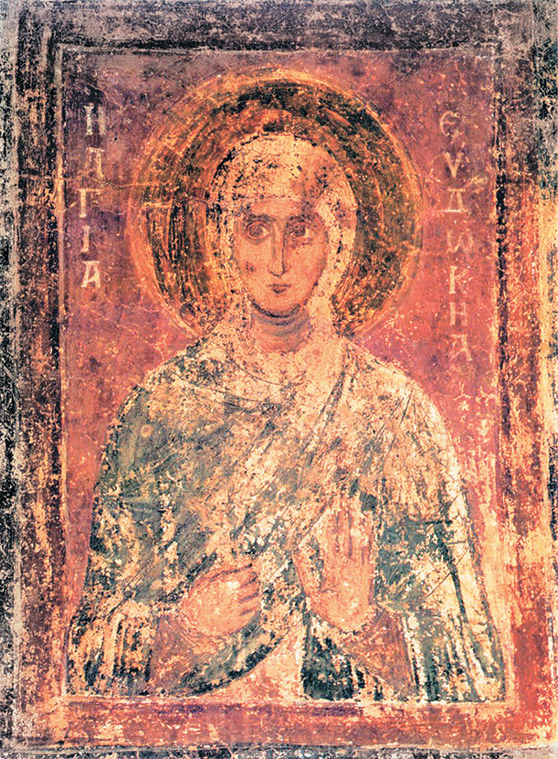 Святая Евдокия. Фреска из Софийского собора в Киеве. XI в.