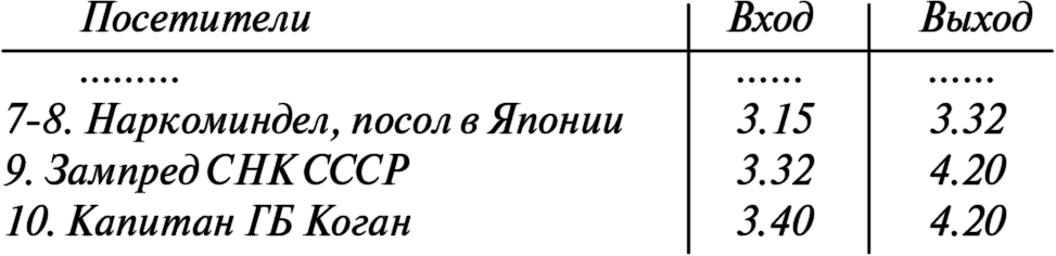 Выдержка из «Книги посетителей Председателя Совета Народных Комиссаров»