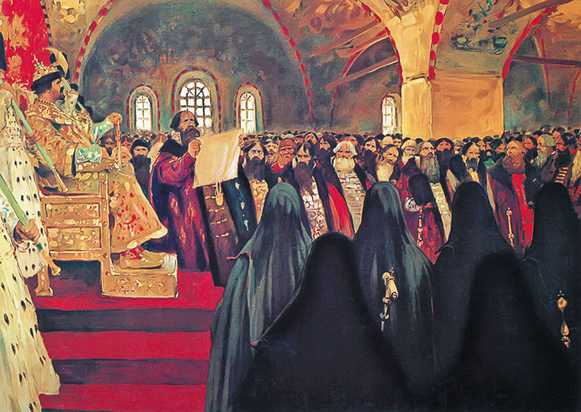 Мелкая властность Марфы не могла соперничать с размахом ее бывшего супруга. С этого момента царица исчезает с политической сцены и скрывается в монастырской келье. Формат правления меняется. На полтора десятилетия устанавливается классическое двоевластие, даже и официально. Обоих Романовых именуют «величествами», а у Филарета титул двойной: «великий государь и святейший патриарх». Соединение светской и духовной власти компенсировало дефицит сакральности, самой болезненной проблемы новых русских династий, и укрепляло статус слабого царя. Высокое значение патриархии казалось всем естественным еще и потому, что в годы Смуты авторитет православной церкви поднялся до небывалых вершин.