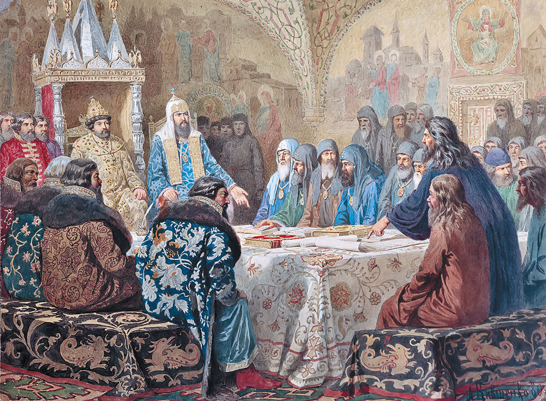 Незыблемая верность старине особенно укрепилась после трагических событий Смуты, которая тоже воспринималась как небесная кара за «шатание». Мы видели, что новое российское государство старательно воссоздавало внешний облик и всю атрибутику прежней Руси. Поэтому, когда сама церковь, оплот старины, вдруг затеяла обновление, это не могло не вызвать разброд в умах. Конечно, в духовенстве и в образованном сословии, как и во всем обществе, абсолютное большинство составляли прагматики и люди, к идеологии равнодушные, однако нашлись и те, кто был готов отстаивать свои убеждения и даже пострадать за них.