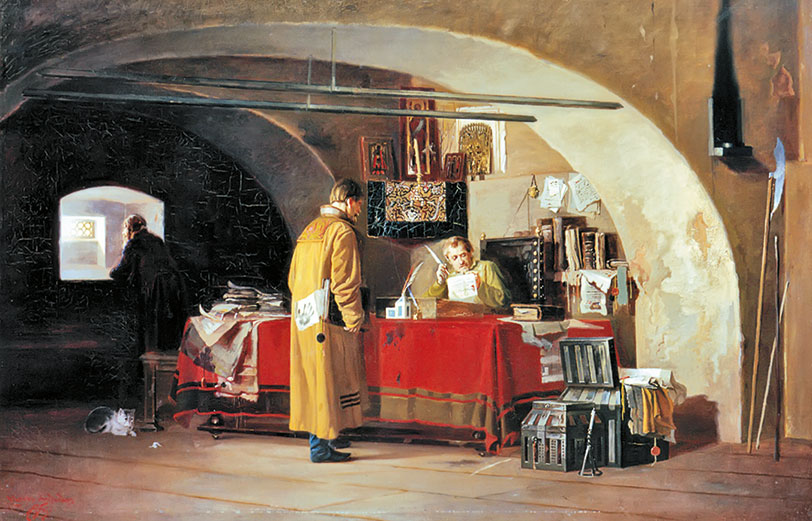 Например, он отвечал за содержание охотничьих соколов и ястребов, а также за особый двор, где жило сто тысяч голубей, покупал заграничных попугаев и отечественных чижов – лишь потому, что государь любил птиц. Алексей Михайлович любил еще и собак – приказ руководил псарней. Пристрастие его величества к сладким наливкам побудило «тайное» ведомство заняться ликерным заводом. Одним словом, оно занималось всем, что представляло личный интерес для царя. Но считать Приказ тайных дел только «департаментом высочайших удовольствий» нельзя, потому что дьяк с подьячими вели и переписку по делам государственной важности, а также ведали артиллерией, которой царь придавал сугубое значение. Неопределенность функций самого близкого к высшей власти органа безусловно была отголоском прежних времен, когда московские цари управляли страной как собственной вотчиной.