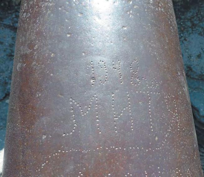 А это какой-то придурок Митя увековечил себя на героической пушке зубилом.