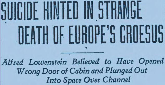 Такая вот у меня версия гибели мультимиллионера Альфреда Лёвенштейна.