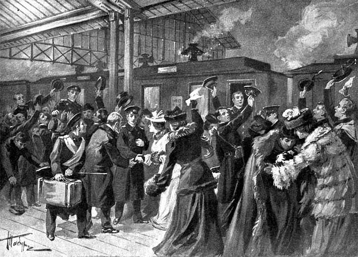 Проводы новоиспеченных морских офицеров на Николаевском вокзале в Санкт-Петербурге в 1905 г.