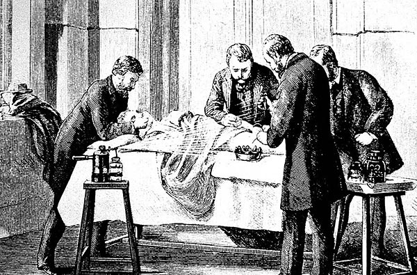 Доктор бесцеремонно приподнял мертвую голову с отпиленной верхушкой, согнулся в три погибели.