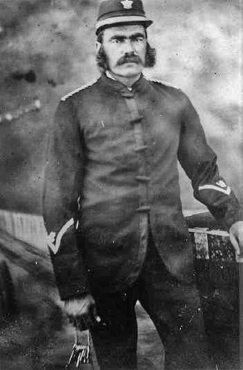 Он сидел, закинув ноги на стол, и раскачивался на стуле; форменное кепи было сдвинуто чуть не до кончика носа, на манер ковбойской шляпы, в углу рта торчала потухшая сигара, а на поясе у сержанта висело два здоровенных револьвера.