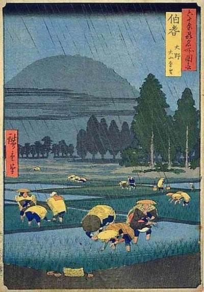 Крестьяне пропалывают поля. На холме – ворота «тории»