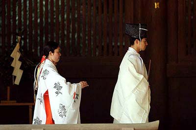 Синтоистский жрец каннуси и его прислужница мико