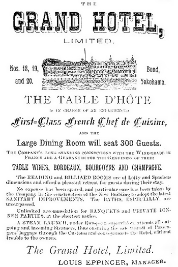 Гранд-отель в Йокогаме. Объявление в путеводителе по Японии конца 19 в.