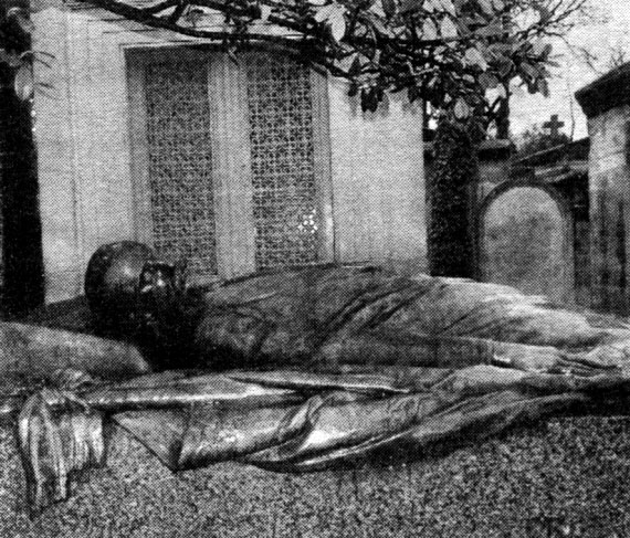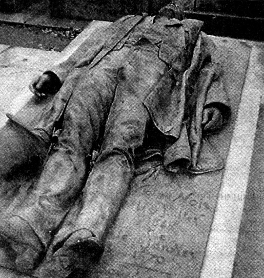Другая бронзовая фигура, тоже возлежащая, смешивает высокую трагедию и скабрезность еще более пикантным образом. Общественный скандал 1870 года: известный буян и головорез принц Пьер Бонапарт застрелил юного журналиста Виктора Нуара, который посмел доставить его высочеству вызов на дуэль. В похоронах жертвы монархического произвола приняли участие 100000 человек, это событие стало громовым раскатом, предвещавшим скорое падение Второй империи. Растроганный скульптор изобразил прекрасного юношу с предельной достоверностью: вплоть до каждой складочки на одежде. То ли из-за этого самого натурализма, то ли не без задней мысли (Нуар имел репутацию сердцееда) ширинка статуи довольно заметно оттопыривается. Должно быть, поначалу это меньше бросалось в глаза, но через сто с лишним лет бронзовая выпуклость выделяется нестерпимым сиянием. Дело в том, что памятник стал объектом языческого поклонения для бесплодных или страдающих от безответной любви женщин – они приносят Нуару цветы и истово гладят магическое место. Рассказывают, что некоторым помогает.