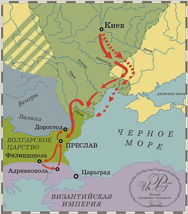 У Константинополя в ту пору было две застарелых проблемы: на востоке арабская, на севере болгарская. При этом дунайские славяне были совсем рядом и сильно донимали греков. Последние сорок лет Византия была вынуждена платить Болгарии обременительную и унизительную дань. Новый император Никифор Фока (963–969) решил положить этому конец, тем более что болгарское государство начало приходить в упадок. Его элита, размягченная благами греческой культуры, утратила прежнюю воинственность, царь Петр был стар и немощен. Византия же недавно одержала ряд важных побед на Средиземноморье и вступала в период очередного подъема.