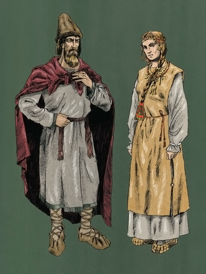 Простолюдинки тоже ходили в льняных рубахах и шерстяных юбках-поневах, а на севере в сарафанах, платье без рукавов.