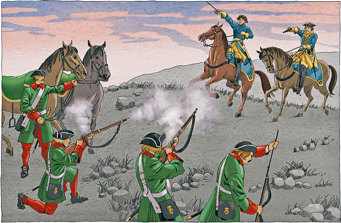 Оба монарха во время сражения проявили чудеса доблести. Для шведского короля это неудивительно – он был человеком войны и, кажется, вообще не имел инстинкта самосохранения. Карл оказывался в самых горячих местах, куда только могли поспеть его носилки. Королю не везло. Сначала его переносной командный пункт был разбит русским ядром, и короля скинуло наземь. Потом его таскали на перекрещенных пиках. Из 24 носильщиков в конце концов уцелели только трое. Когда стало ясно, что разгром абсолютен и надеяться не на что, Карла уволокли с поля чуть не насильно.