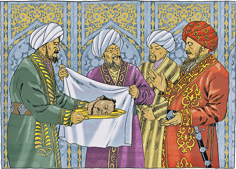 Тогда Шергази-хан изменил тактику. Он согласился принять русских как дорогих гостей, но попросил их разделиться на несколько партий, поскольку в одном месте обеспечить большое количество людей и лошадей водой никак невозможно. Князь Бекович-Черкасский, очевидно, уверенный в том, что после поражения хивинцы будут вести себя смирно, и, памятуя царский приказ о приведении хана в подданство, дал себя уговорить. В результате русских перехватали и перебили по частям. Погиб и Бекович, чью голову Шергази затем отправил показать хану бухарскому.