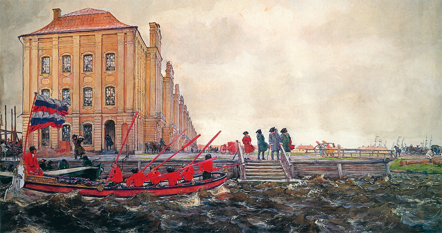 Вот мальчик-царь находит в измайловском сарае забытый английский ботик, способный маневрировать под ветром, и плавает в Просяном пруду шириной 500 метров. Потом юноша перебирается на Переяславское озеро (ширина – 6 километров) и строит с плотниками Немецкой слободы лодку побольше. В 1693 году молодой самодержец впервые видит в Архангельске настоящее море и настоящие корабли; тогда же он закладывает первый большой парусник «Святой апостол Павел». В 1696 году под Воронежем начинается масштабное строительство русского военного флота. В 1703 году спущены на воду первые корабли на Балтике.