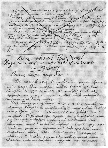 «В начале июля, в чрезвычайно жаркое время, под вечер, один молодой человек вышел из своей каморки, которую нанимал от жильцов в С-м переулке, на улицу и медленно, как бы в нерешимости, отправился к К-ну мосту. Он благополучно избегнул встречи с своею хозяйкой на лестнице. Каморка его приходилась под самою кровлей высокого пятиэтажного дома и походила более на шкаф, чем на квартиру. Квартирная же хозяйка его, у которой он нанимал эту каморку с обедом и прислугой, помещалась одною лестницей ниже, в отдельной квартире, и каждый раз, при выходе на улицу, ему непременно надо было проходить мимо хозяйкиной кухни, почти всегда настежь отворенной на лестницу. И каждый раз молодой человек, проходя мимо, чувствовал какое-то болезненное и трусливое ощущение, которого…