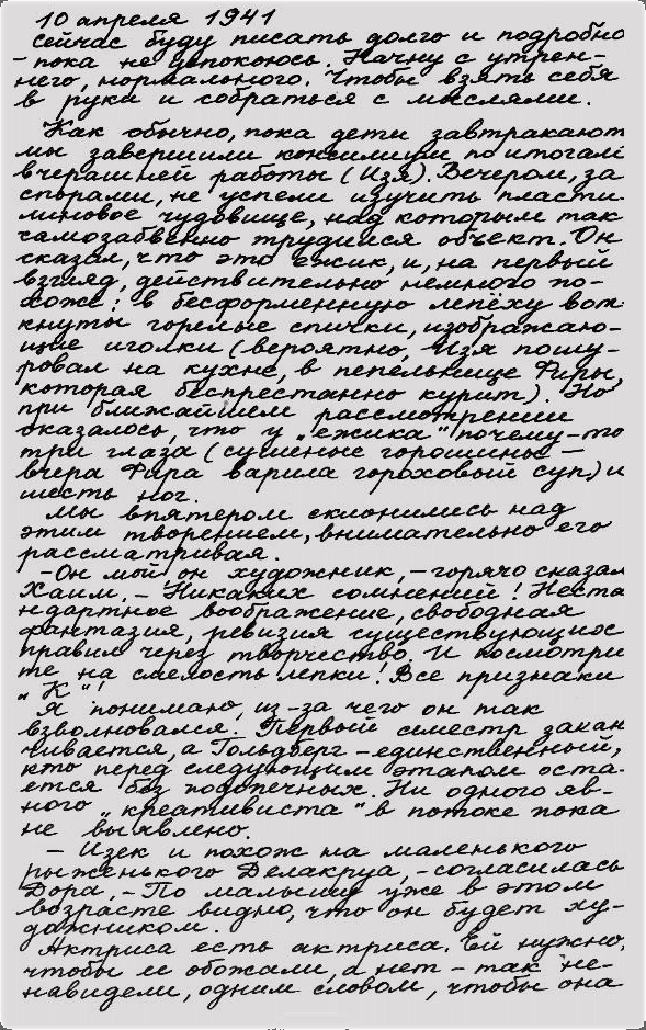 Кстати говоря, вопрос: что делать с Гольдбергом в следующем семестре, если группа «К» останется вакантной? Вот в чем беда маленького класса! Если б, как положено по теории, в потоке было 25 детей, обязательно подобрался бы кто-то с творческим потенциалом. У нас же, кажется, никого такого нет.